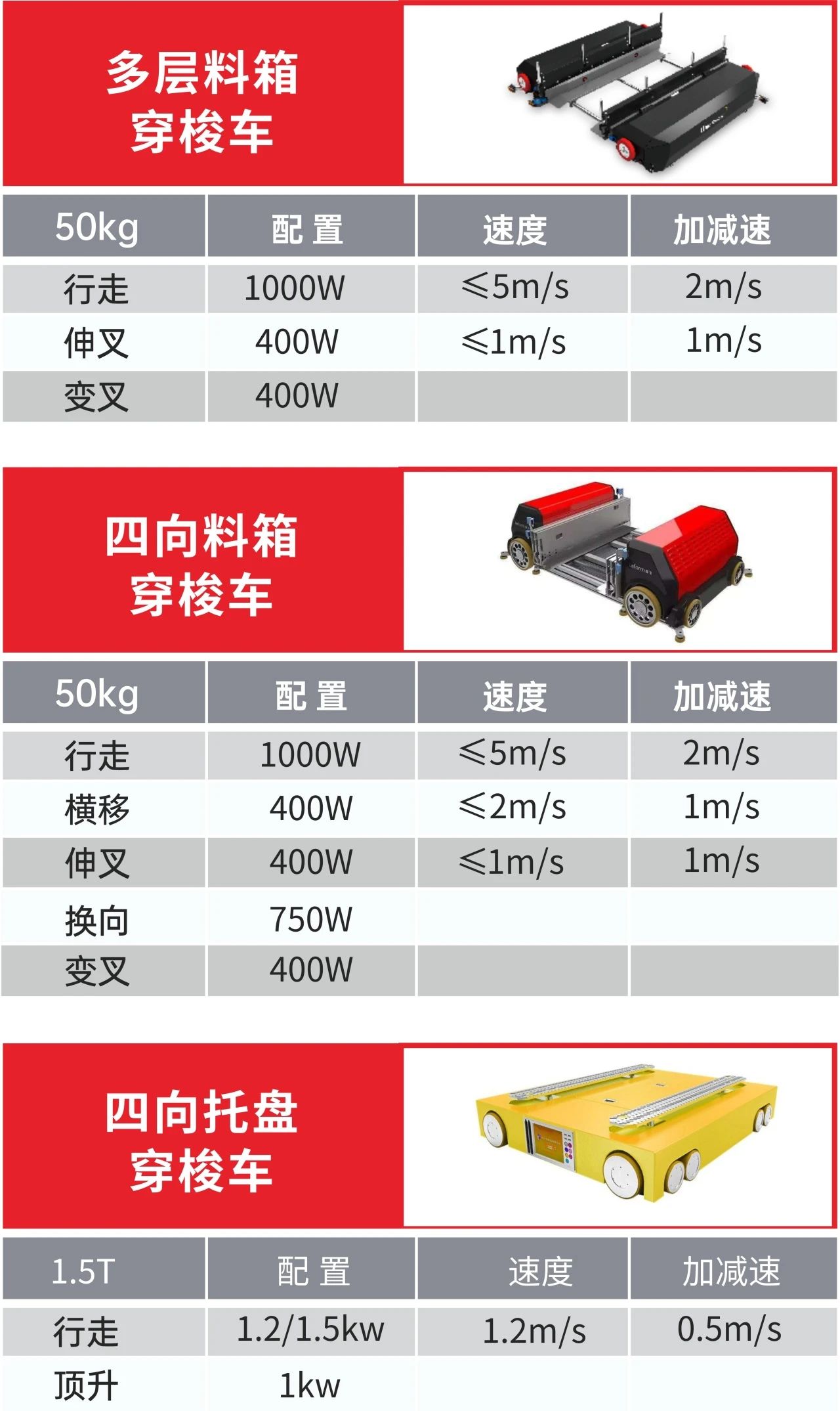 高磁密度电机设计,转矩脉动低,温升低,满足穿梭车连续频繁启停工作制