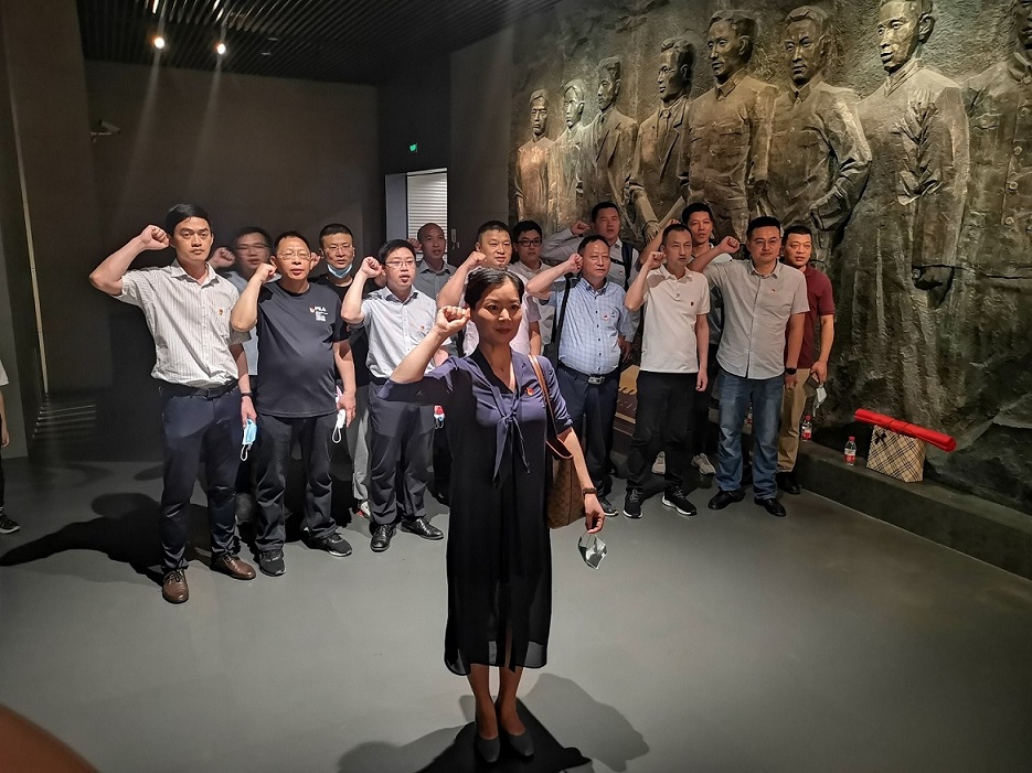 在参观的最后,全体党员在党旗前,重温了入党誓词,深切缅怀革命先烈,更加坚定了为党的中国特色社会主义事业奋斗终生的理想信念。