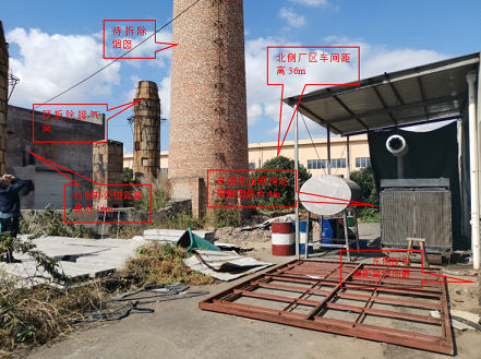 为此,京安公司执行董事陈晓红、副总经理兼总工程师辛振坤等领导多次奔赴现场进行扩展调研,通过拆解现场周边环境,只有烟囱西偏北15°一条缝隙形空地,可满足烟囱的倒塌要求,副总经理、总工程师辛振坤亲自参与测量、确定切口位置、形式、长度和高度,帮助爆破队伍分层吃透现场环境,为后续爆破工作做好支撑基础。