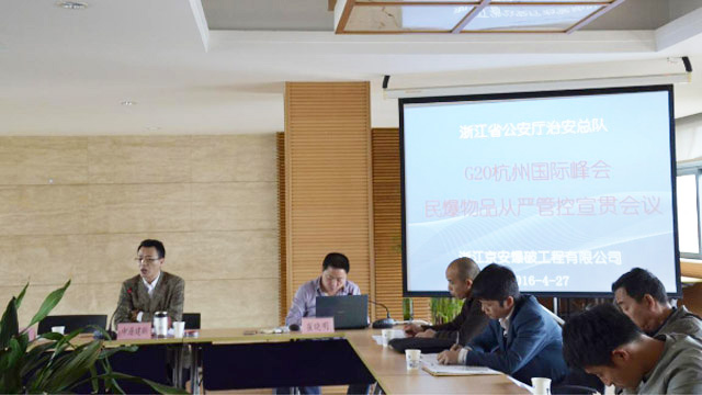 会议传达了浙江省公安厅治安总队“民用爆炸物品从严管控”会议精神,认真学习了 《G20杭州国际峰会安保民用爆炸物品从严管控工作方案》以及公安部《从严管控民用爆炸物品十条规定》,并结合公司实际进行了逐条解析,查摆日常管理中存在的不足,深入落实整改措施。